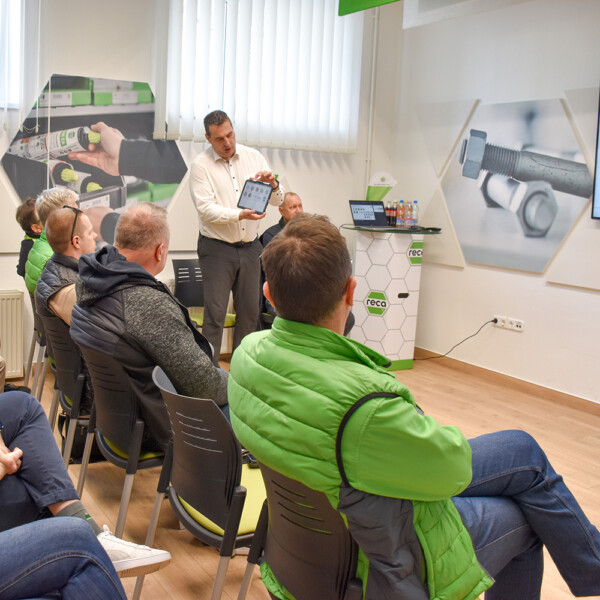 Szaktanácsadóink a budapesti központunkban gyűltek össze, hogy közvetlen tapasztalatot szerezzenek a RECA legújabb RECA fejlesztéseiről. Az esemény különlegességét az adta, hogy anyavállalatunk, a Kellner & Kunz termékmenedzsere, Bernhard Schaufler személyesen mutatta be az újdonságokat: részletes betekintést nyújtott a műszaki jellemzőkbe, a gyakorlati előnyökbe és a különböző felhasználási lehetőségekbe.